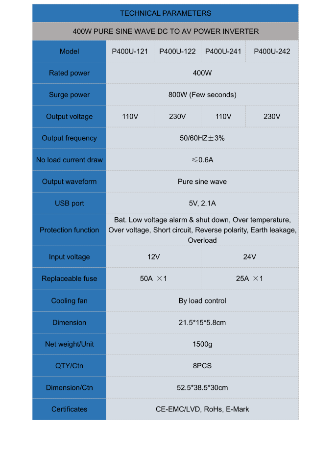 400w цэвэр синусын долгион DC нь Power Power Inverter руу
